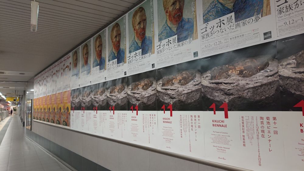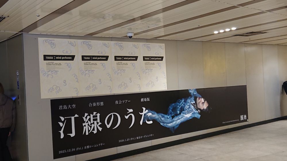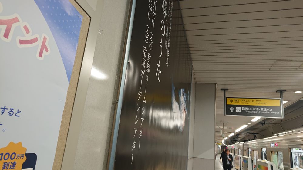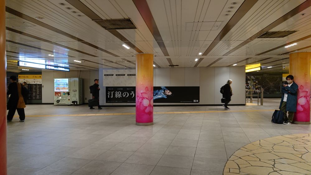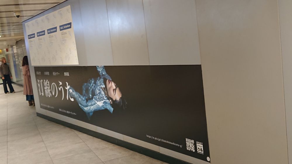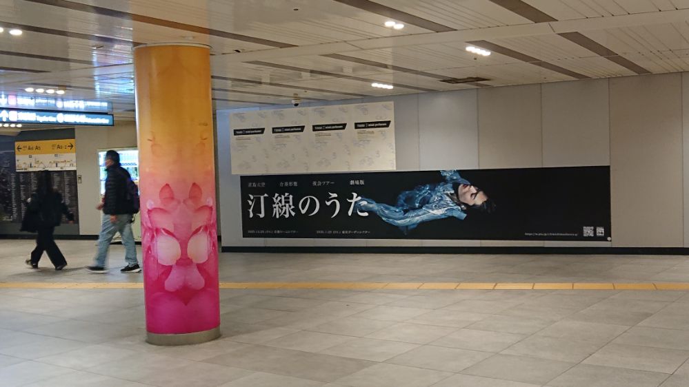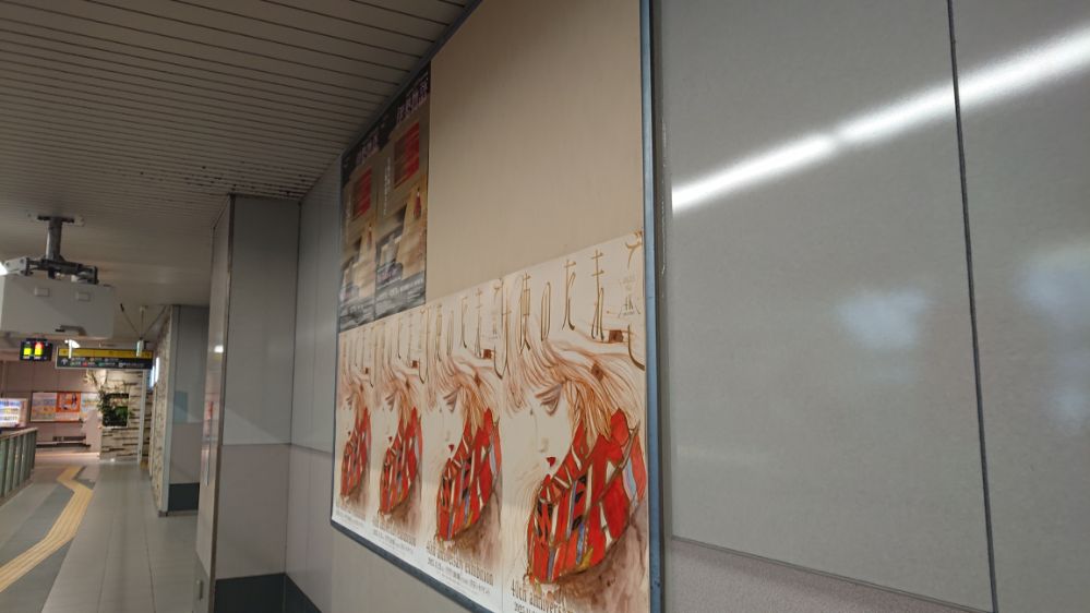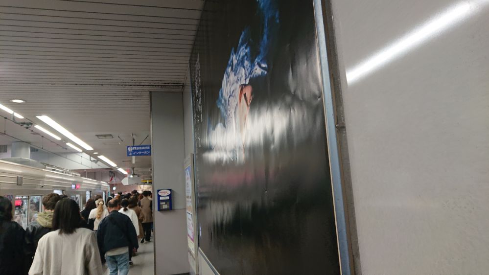 降車専用ホームはずっと壁で一大広告エリアになっているのだった、端から端まで見てみたところ美術系の広告が殆ど(これ動画で撮ればよかったな)、その中でひとつだけ一面全体使ってるので「おおー」という印象、デザインもツアータイトルとビジュアルのみのシンプルさというか大胆さ(しかも初出し画像)で力の入れようが凄いなと